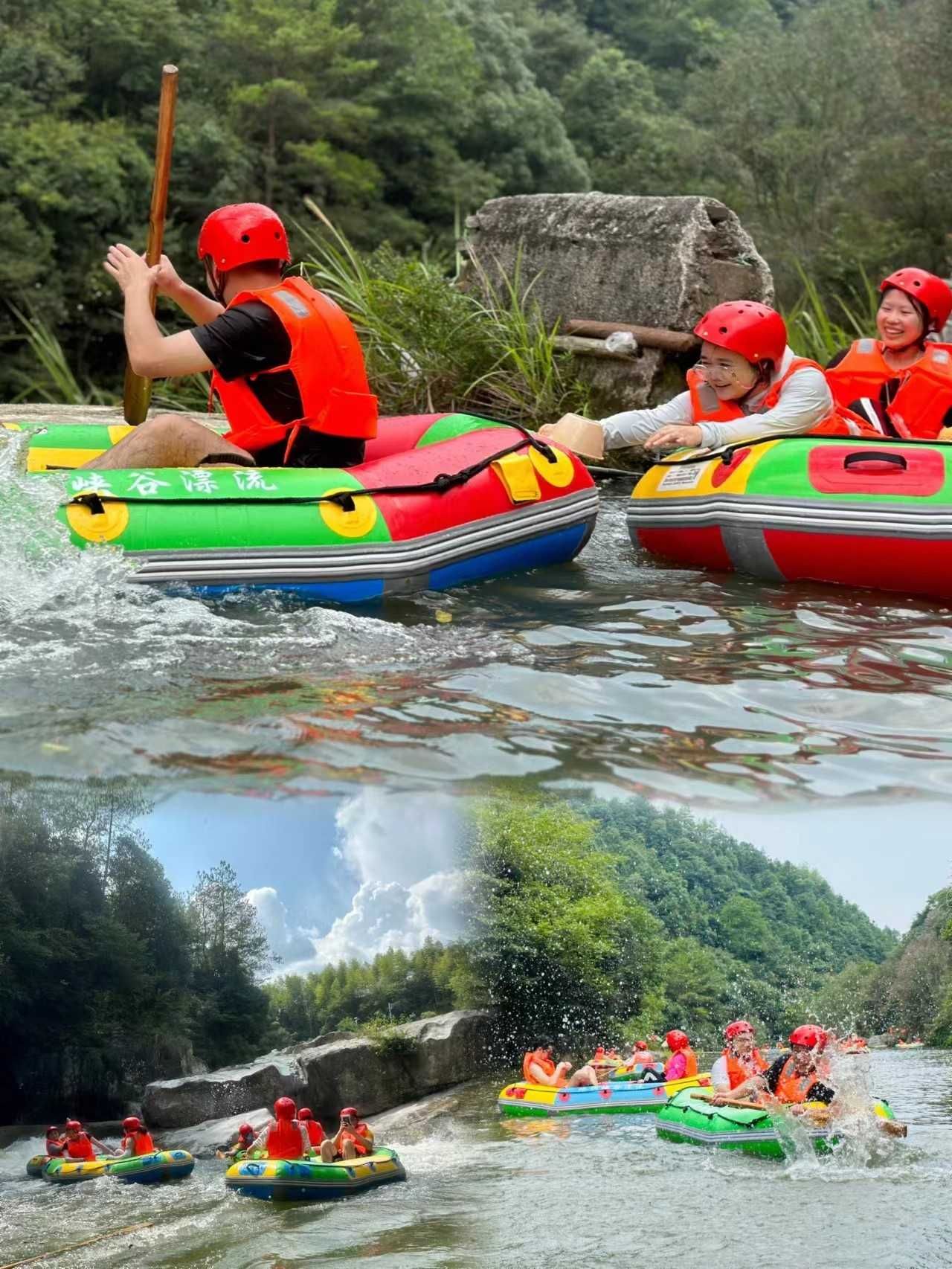 午餐過后,大家來到了石牛寨蟒洞峽谷漂流。嘩嘩的水聲,振蕩河谷,氣勢雄壯,一路漂流而下,激流險灘迭起。兩邊的崖壁上,秀木扶疏,青苔密布,各色野花灑落其間,織成一幅錦繡圖案。大家舉著水槍,拿著水瓢,與碧水嬉戲,在山谷間放歌,沿途的歡笑聲、尖叫聲此起彼伏。在漂流過程中,大家互相幫助,共同克服了一個個險峻的彎道,不僅體驗了漂流的樂趣,而且進(jìn)一步增進(jìn)了友誼。
